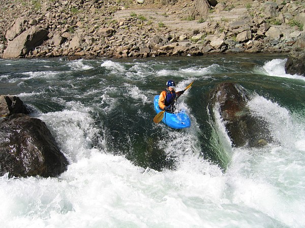 Amanda Petrack-Zunich running Boxcar rapid, on the Big Bend run of the North Fork Feather. Boxcar is a III+ / IV- depending on the flow. - Photo: Dave Steindorf | ![]() |