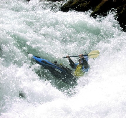 Frank Damiano in Hell Hole rapid on the Pigeon Point run on the Trinity. Flow was 550 cfs. - Photo: Mike MacAllister. | ![]() |