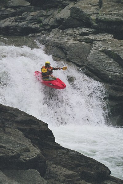 John Jerger running the third falls in the Waterfall section. At this flow, just start left and follow the current. - Photo: Cindy Seibel | ![]() |