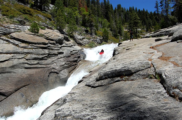 Ian Buckley at the top of Skyscraper. The rapid continues past the bottom left corner of the photo, dropping into a short, steep-sided pool before leading into Off Ramp. - Photo: Dan Kanner | ![]() |